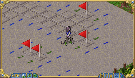 Graphically, rather than trying to match the aesthetic of the original game, I aimed to match the aesthetic of Furcadia, making it feel like every asset of the game belonged beside the official graphics of Furcadia and wouldn't look out of place in an official map. Even after the game upgraded to 32-bit graphics, my Minesweeper game retains the classic feel.